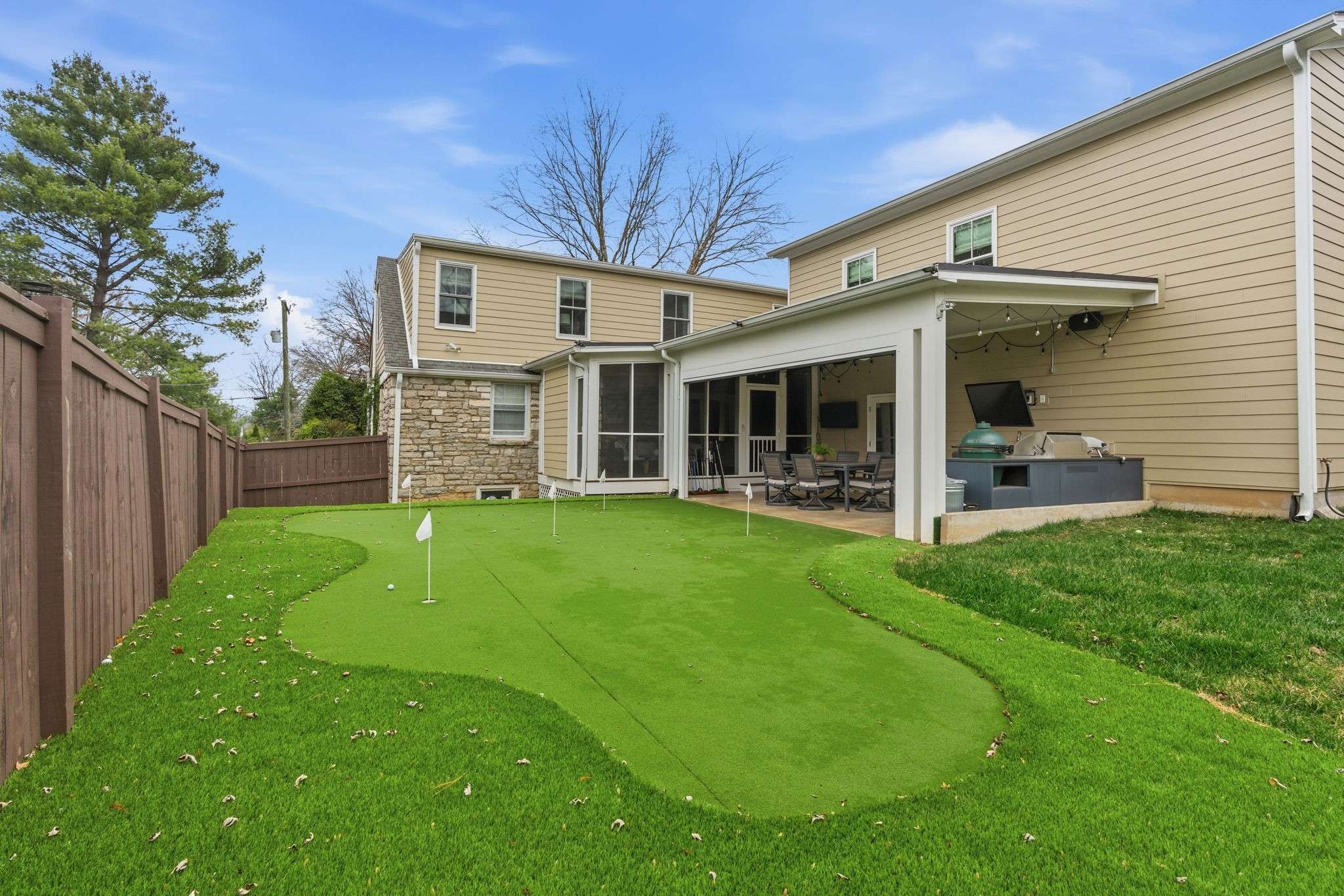 Discover a charming storybook stone cottage tucked along a quiet street in the heart of the green hills, perfectly positioned for easy walks to shops, cafés, and restaurants. Inside, an inviting open-concept kitchen flows seamlessly into the living and dining areas—ideal for both elegant entertaining and relaxed everyday living.The versatile floor plan offers numerous flex and bonus spaces to suit a variety of lifestyles. A spacious bonus room (or 5th bedroom) with a full bath sits above the garage, perfect for guests, work, or play. The finished basement adds even more living space with a wet bar and cozy gathering area. Outdoor living shines here: a screened porch with gas fireplace opens to a covered patio and a fully equipped outdoor kitchen, all overlooking a private putting green—your own fenced-in backyard retreat. Interior photos coming soon.